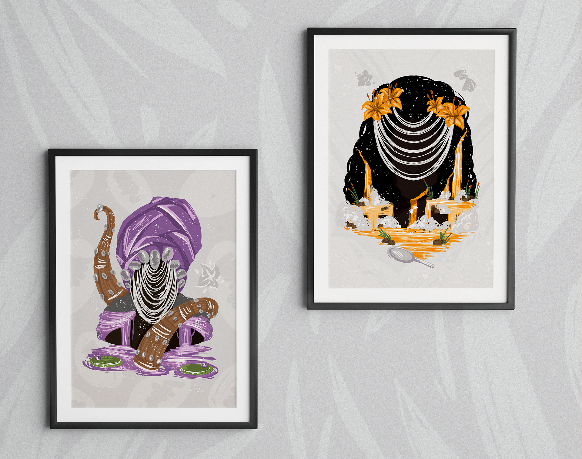 Based on the itans of the female orishas, "Yabás" is an authorial project of digital portrait illustrations that pays tribute to the Yoruba mothers of African lands.
